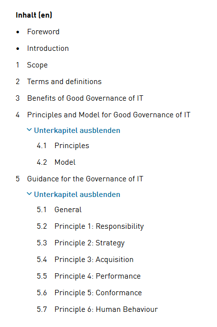 - Standard der Corporate Governance: COSO, ISO/IEC 38500:2008