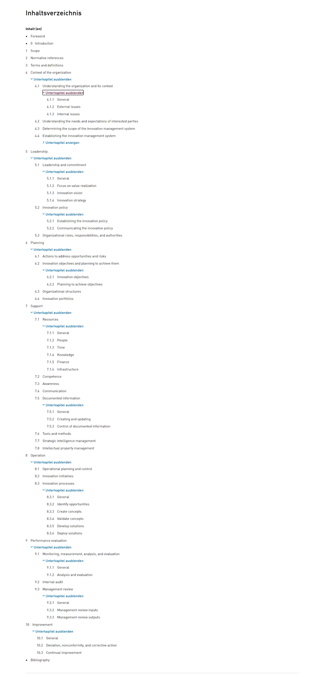 Inhaltsverzeichnis ISO 56002